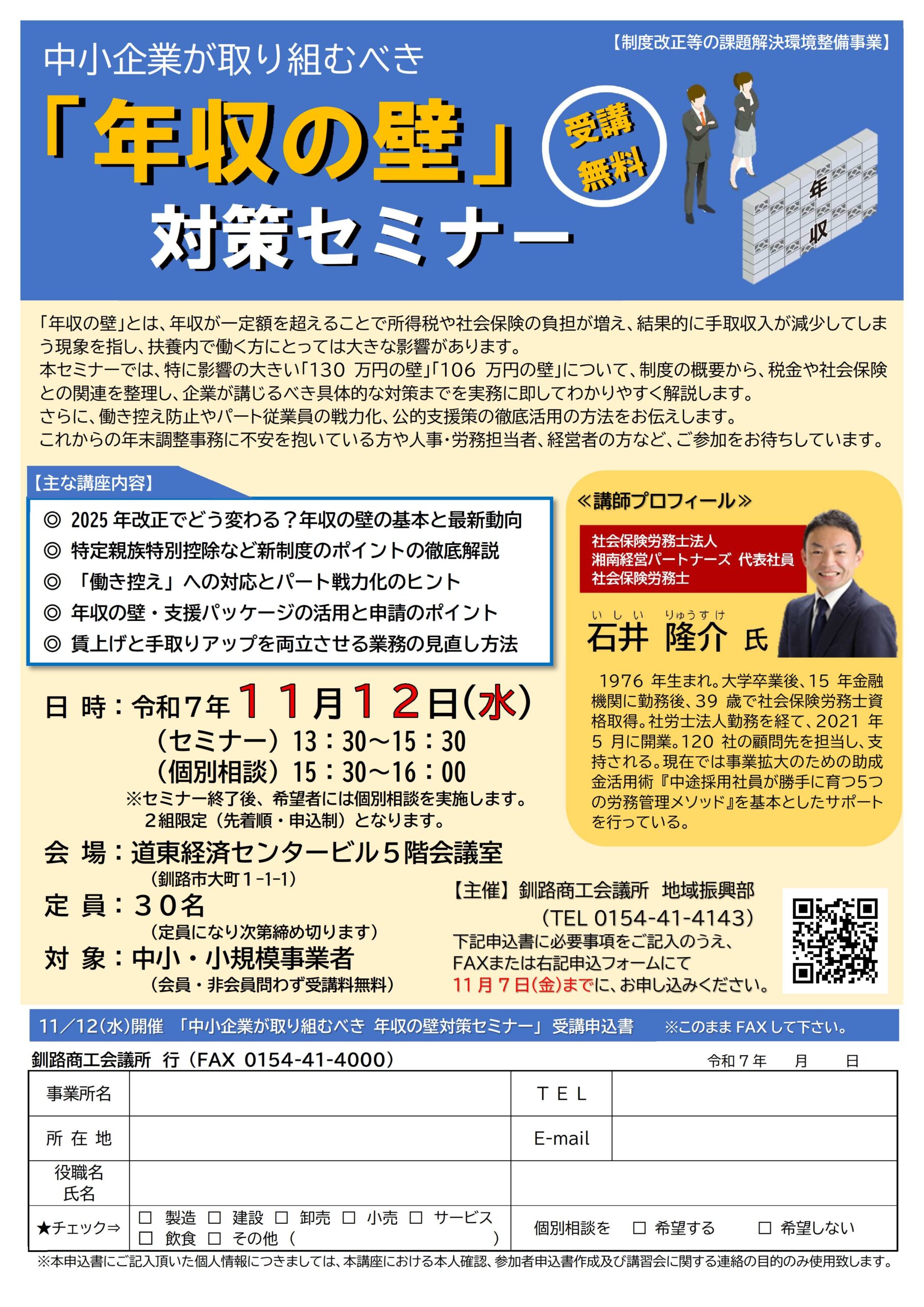 本セミナーでは、特に影響の大きい「130万円の壁」「106万円の壁」について具体的な対策を実務的にわかりやすく解説いたします。