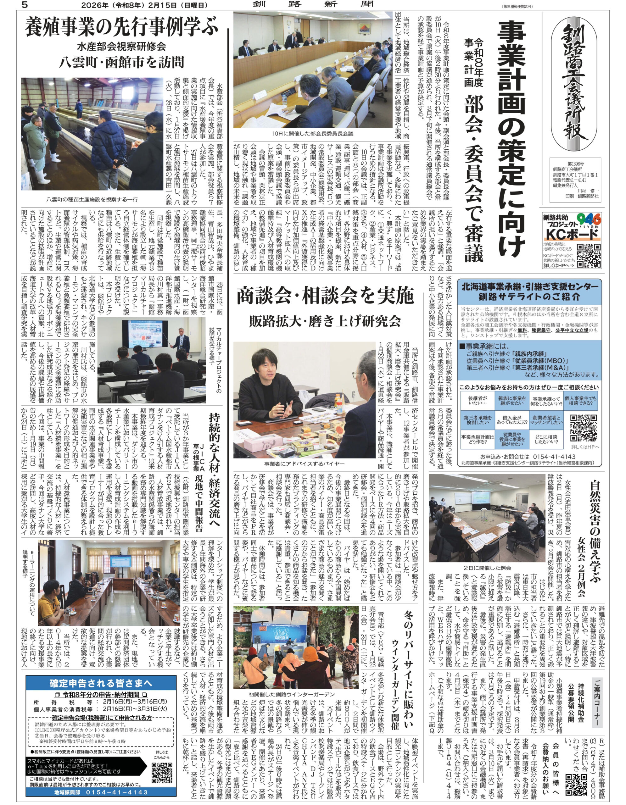 所報では、会議所事業の案内や活動報告のほか、事業者の皆さまの経営支援に関する情報の提供、国や北海道、釧路市の補助金や助成金に関するお知らせなど様々な情報を発信しておりますのでぜひご覧ください。